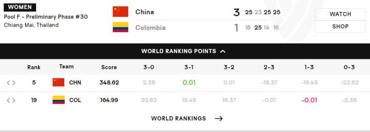 中国女排这两场胜利都世界排名积分都没有什么太大影响,3-1赢球都不到1分,中国女排本次小组赛最关键的还是打多米尼加女排的第三战。